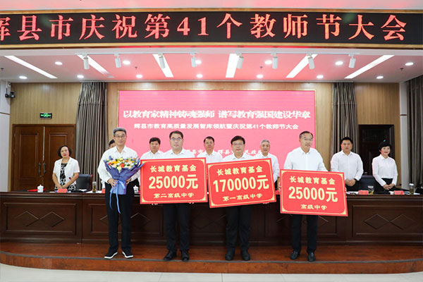 9月9日上午9點,輝縣市教育高質量發展智庫領航座談會暨慶祝第41個教師節座談會隆重召開。借助政府搭建的平臺,新鄉長城再次為當地優秀師生頒發獎助金,這不僅僅是一場儀式,更是新鄉長城八年來對教育事業始終如一的堅守。