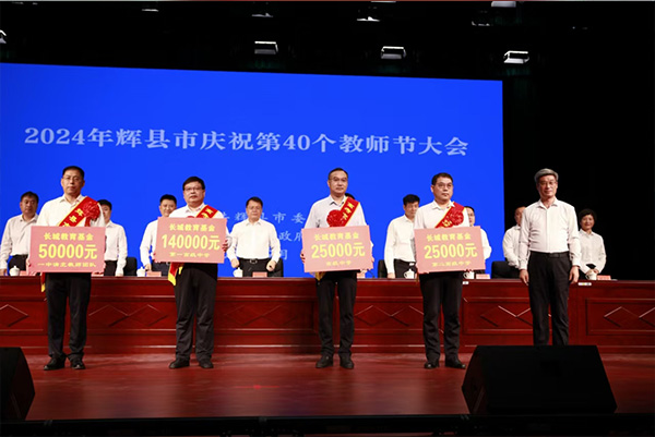 2018年長城集團出資500萬成立長城教育基金對新鄉市高考優秀學子和教師團隊進行獎勵,六年來累計資助176人次,發放獎勵近160萬元。李繼游書記指出,長城集團尊師重教的義舉,彰顯了責任擔當、家國情懷,必將進一步激發廣大學子奮發圖強、勇攀高峰的豪情壯志;必將進一步提升全市廣大教師愛崗敬業、潛心育人的熱情和決心;必將進一步在全社會唱響主旋律,弘揚社會主義核心價值觀。李書記深情寄語各位學子要樹立遠大理想,牢記感恩之心,繼續努力學習,市委、市政府將繼續認真落實教育優先發展戰略,千方百計加大教育投入,全力以赴優化資源配置,持之以恒改善辦學條件,讓“輝縣教育”這張名片越來越亮,品牌越來越響。
